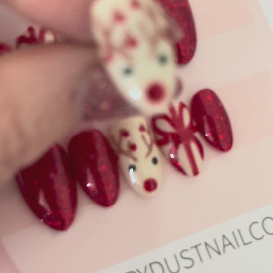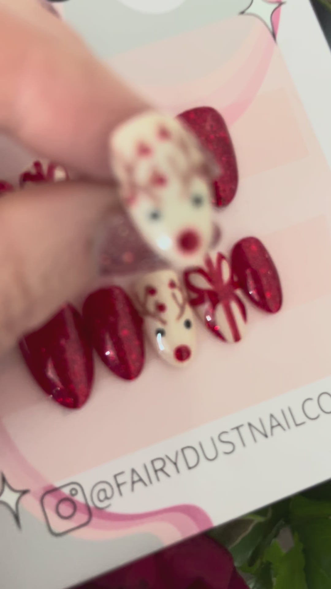 Add some sparkle to your holiday look with The Glitzy Reindeer Set. Featuring vibrant red glitter and a cute reindeer design, these press on nails are perfect for adding some festive charm to any outfit. Get ready to sleigh with this must-have set.